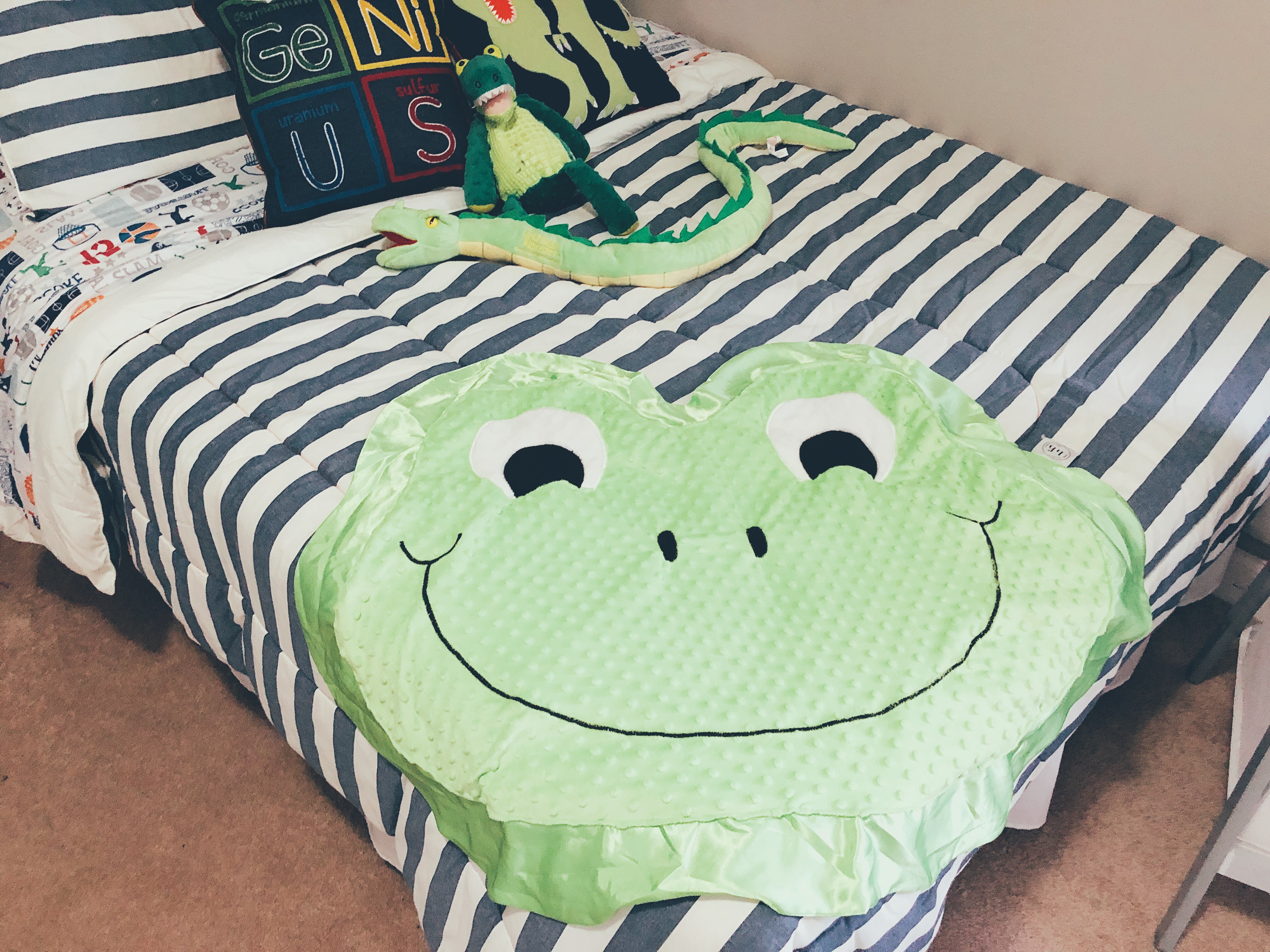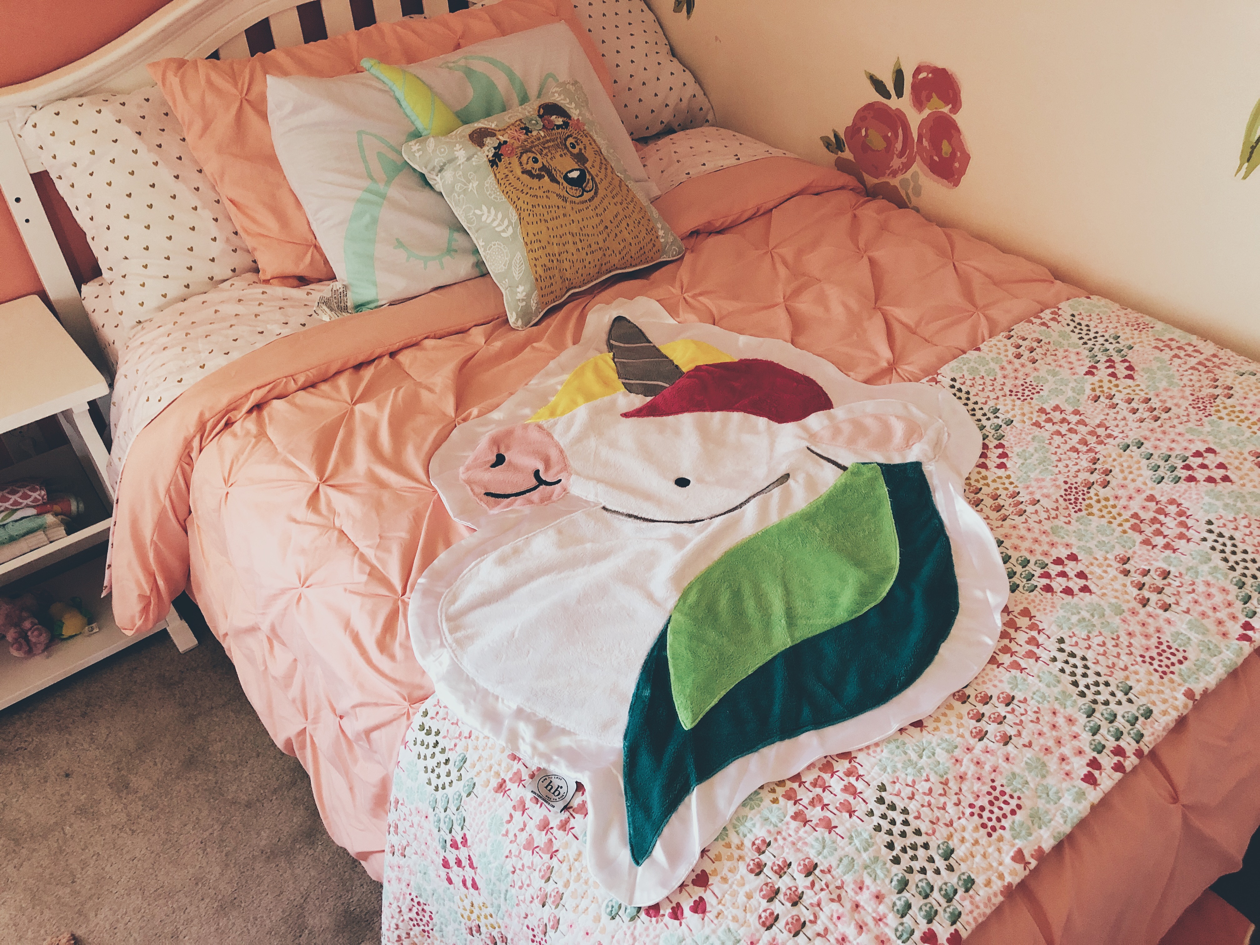 It is a very rare occasion that my daughter is seen without a blanket and a baby with her. This baby could be an actual baby doll, a teddy bear, a monkey, etc. The possibilities are endless. Happy Blankie has given her the ability to carry both of these beloved things with her at once. A cross between a blanket + a stuffed animal, your child has the opportunity to select one of sixteen choices available. The best part is their “one to love, one to give” mission – one blanket is given away for every blanket purchased. That’s a win! Pictured below are Stomp the Frog and Confetti the Unicorn.